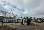 Caminhão tomba, derruba postes e mobiliza equipes no bairro Cidade dos Lagos, em Guarapuava