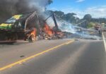 Batida frontal entre caminhões mata tio e sobrinho na BR-373 em Imbituva