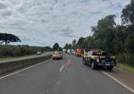 Caminhão carregado com soja tomba na BR-277 em Guarapuava; motorista teve ferimentos leves