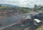 Caminhão tomba e pega fogo em Prudentópolis e duas pessoas morreram