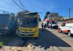 Ônibus da Pérola do Oeste perde controle e bate em poste, na Vila Bela; 10 pessoas se feriram