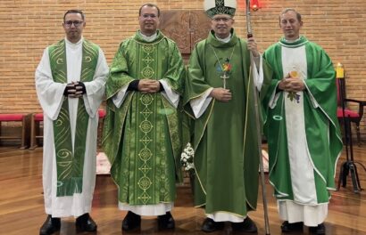 Padre Erico Gabriel Gurkowski, nomeado administrador paroquial, e o padre Thiago Santos Souza, da Comunidade Bethânia, que assume a função de vigário paroquial.