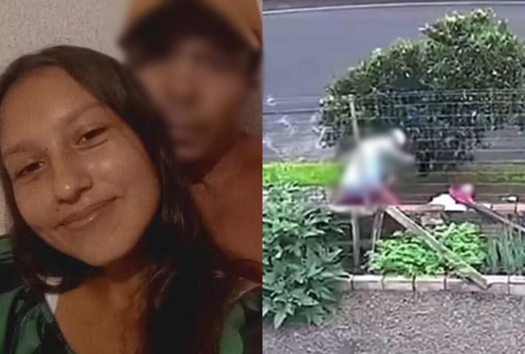 Na sequência, o homem ataca a vítima com golpes de faca. A adolescente cai no chão junto com a criança, enquanto ele continua as agressões e foge logo depois.