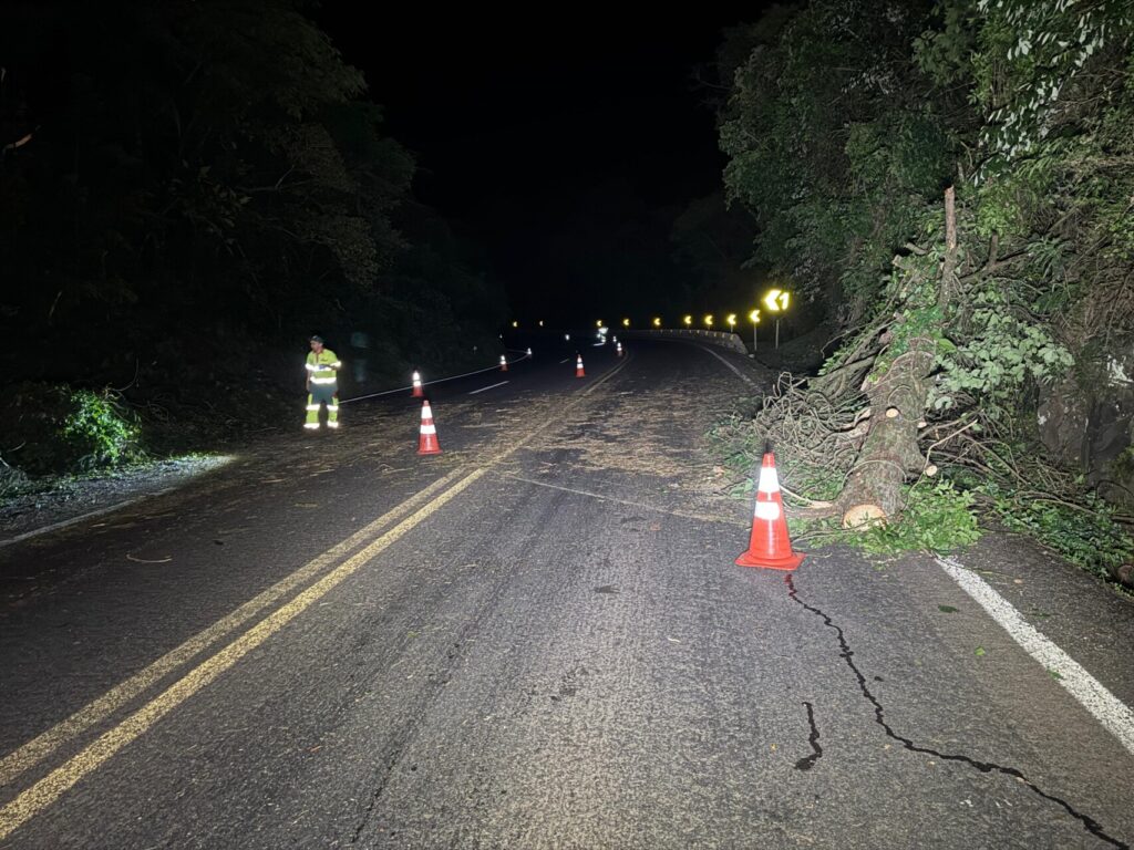 Árvore é cortada propositalmente para interditar BR-277, em Nova Laranjeiras; suspeitos ainda não foram identificados