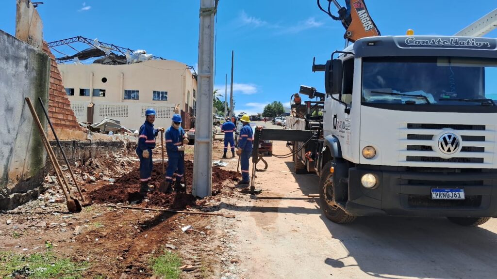 A Copel está com 20 equipes pesadas de construção e manutenção, somando cerca de 200 profissionais. O trabalho envolve a substituição de mais de 300 postes danificados e a reconstrução completa da rede elétrica na área urbana. No sábado, cerca de 60 postes já haviam sido instalados, com os serviços continuando durante todo este domingo. Outras 20 equipes de serviços leves atuam nas cidades do entorno, menos afetadas pelas chuvas, mas que ainda assim demandam atendimento.