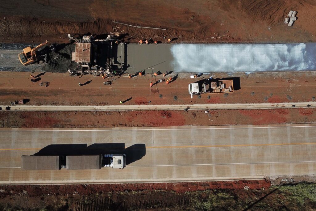 Os serviços mais avançados são a terraplenagem da nova pista e as melhorias no pavimento da pista antiga, onde já está sendo executada a técnica whitetopping, com uma nova camada de pavimento rígido de concreto executada sobre o pavimento asfáltico existente. Com isso, ambas as pistas serão do mesmo material, que apresenta vida útil mais longa, com menos necessidade de serviços de conservação. A pavimentação em concreto acontece simultaneamente em ambas as pistas, com desvio do tráfego conforme os segmentos vão sendo liberados.