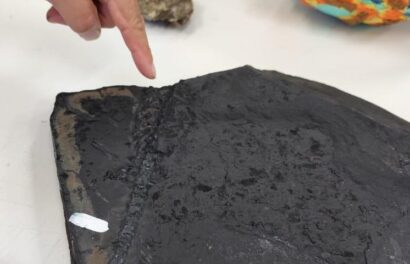 Os fósseis estão impressos em camadas de folhelho betuminoso, que é uma rocha abundante na região e que funciona como uma esponja, absorvendo matéria orgânica. O Mesosaurus brasiliensis é a espécie que mais aparece nas rochas analisadas pelos pesquisadores. “Ele é um réptil já extinto. Pela literatura que nós conhecemos, ele media em torno de 40 centímetros, é mais antigo do que os dinossauros, e é como se fosse uma lagarto. Você encontra nas patas deles como se fosse uma película. Naquela época, a predominância de seres vivos estava nos oceanos”, descreve Basso.