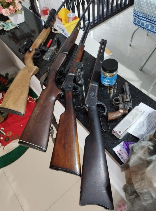 Nesta etapa da operação, um homem de 62 anos, que não é servidor público, foi preso em flagrante por posse ilegal de armas de fogo.