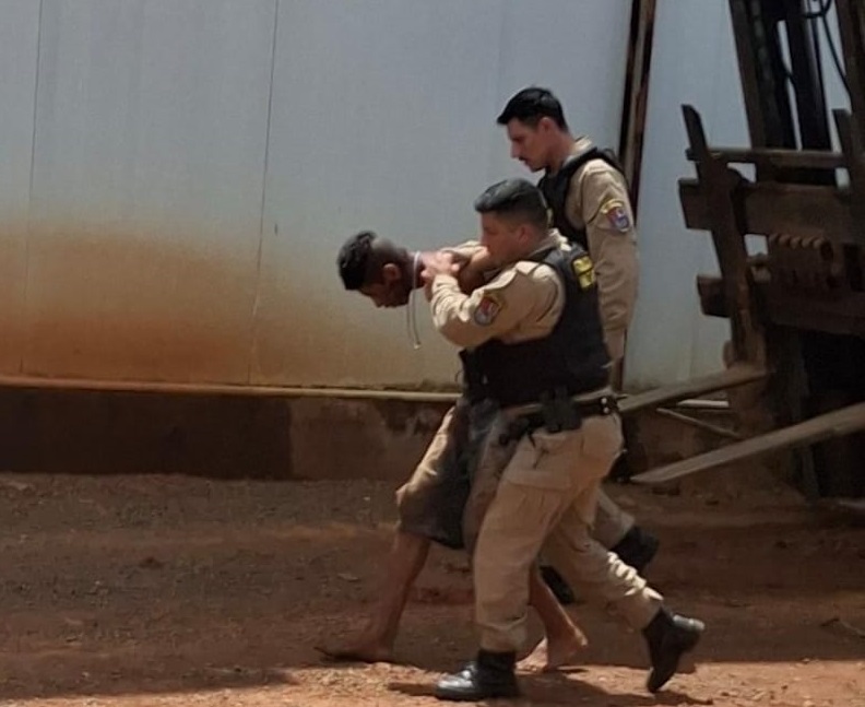 A equipe policial militar deslocou até o local informado, realizou incursão pelos fundos de uma empresa, onde após alguns minutos visualizou vestígios na mata, na sequência conseguiu localizar um indivíduo escondido entre arbustos.