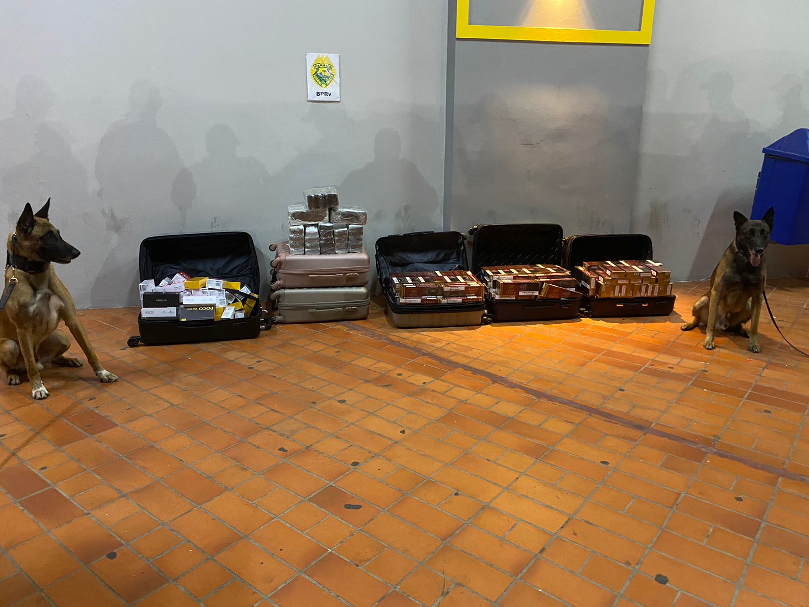 Apreensão da droga contou com apoio de cães. Foto: PRE.