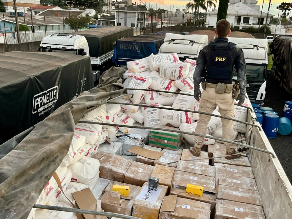 PRF apreende cigarros eletrônicos e celulares escondidos em carga de farinha de trigo em Guarapuava