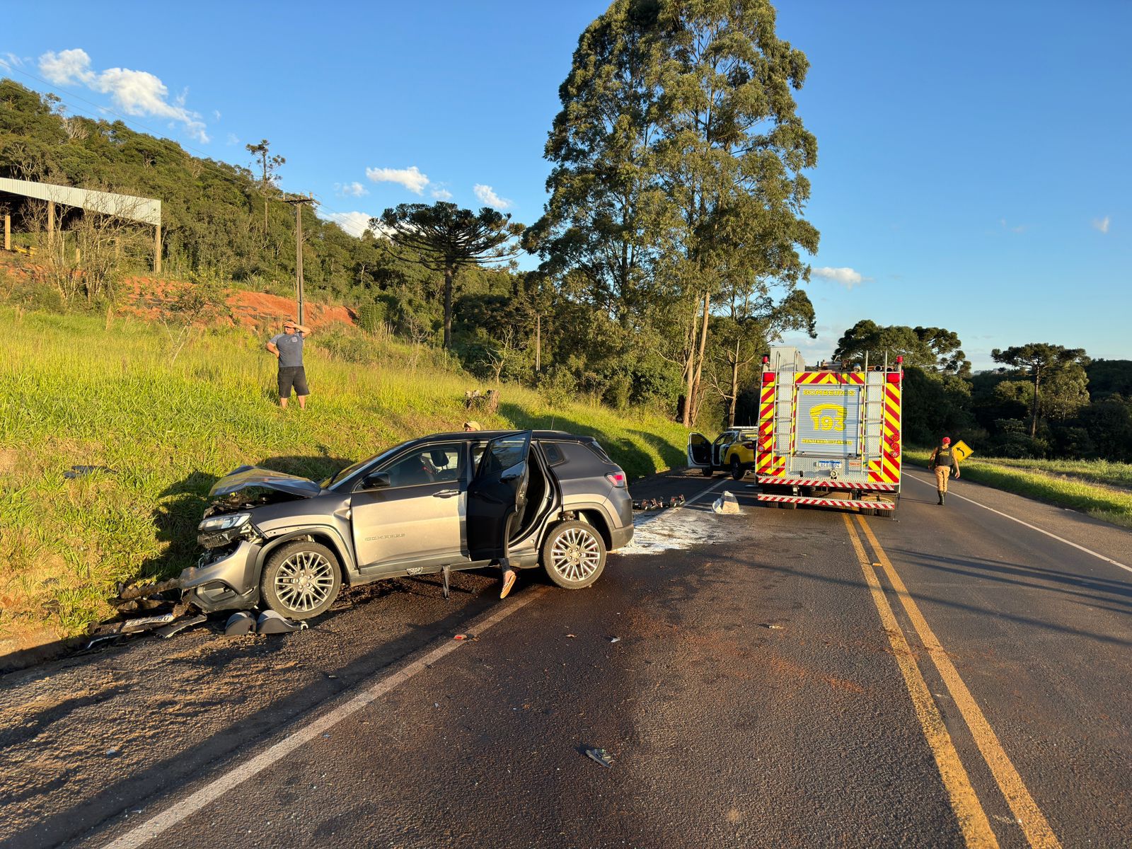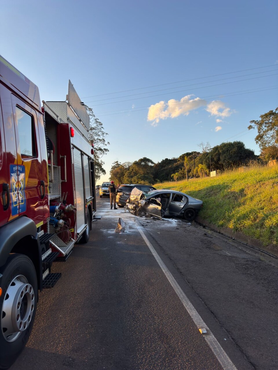 A batida frontal aconteceu no km 183 da rodovia, no município de Pitanga. Segundo a Polícia Rodoviária Estadual, um Honda Civic dirigido por um rapaz de 22 anos seguia de Boa Ventura de São Roque sentido Pitanga quando bateu de frente com um Jeep Compass, que teria invadido a pista contrária.