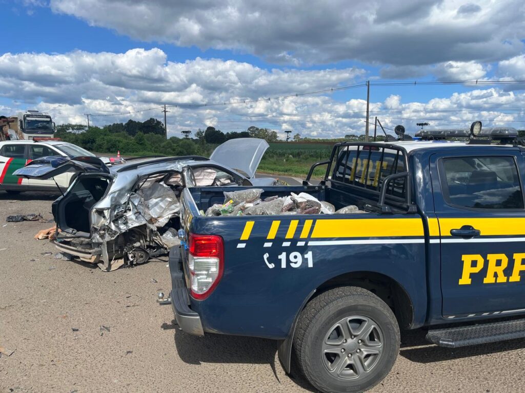 Um carro usado por traficantes se envolveu em um acidente na tarde de domingo (10/11), na BR 277, km 351, próximo ao posto Portelão, em Guarapuava. A batida transversal envolveu os veículos VW/TCROSS e uma camionete Mitsubishi/TRITON.