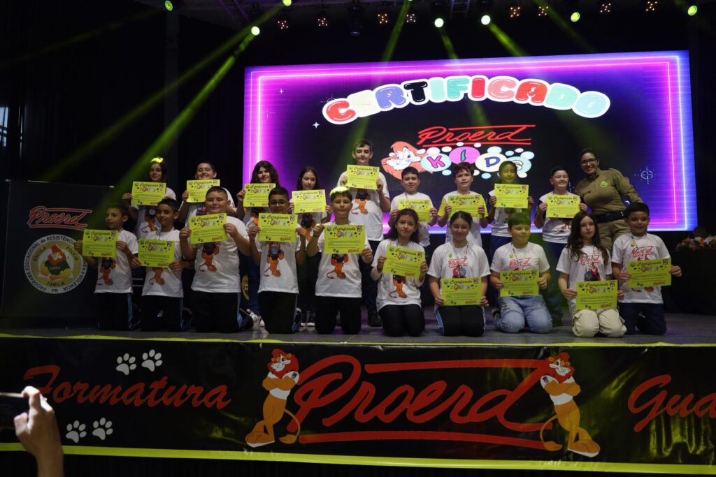 Ao longo da solenidade, os alunos dançaram e cantaram ao som da Banda Jovem de Guarapuava Maestro Leonel Rossetim. Os Proerdianos destaques receberam medalhas e certificados, representando suas turmas, e os autores das melhores redações, elaboradas em sala de aula, foram premiados com uma pelúcia do leão Daren, o mascote do programa.