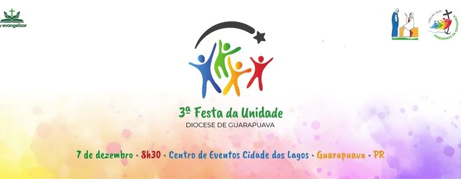 A 3ª Festa da Unidade da diocese de Guarapuava está chegando. Será no próximo sábado, dia 7 de dezembro de 2024 com uma programação especial: catequese com o bispo, Dom Amilton Manoel da Silva, sobre o Ano Jubilar, celebração da luz com Nossa Senhora de Belém, distribuição das Cartas Pastorais, apresentações artísticas, adoração, santa missa, entre outros momentos.
