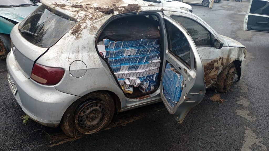 Dentro do veículo foram encontrados mais de mil pacotes de cigarros contrabandeados do Paraguai.