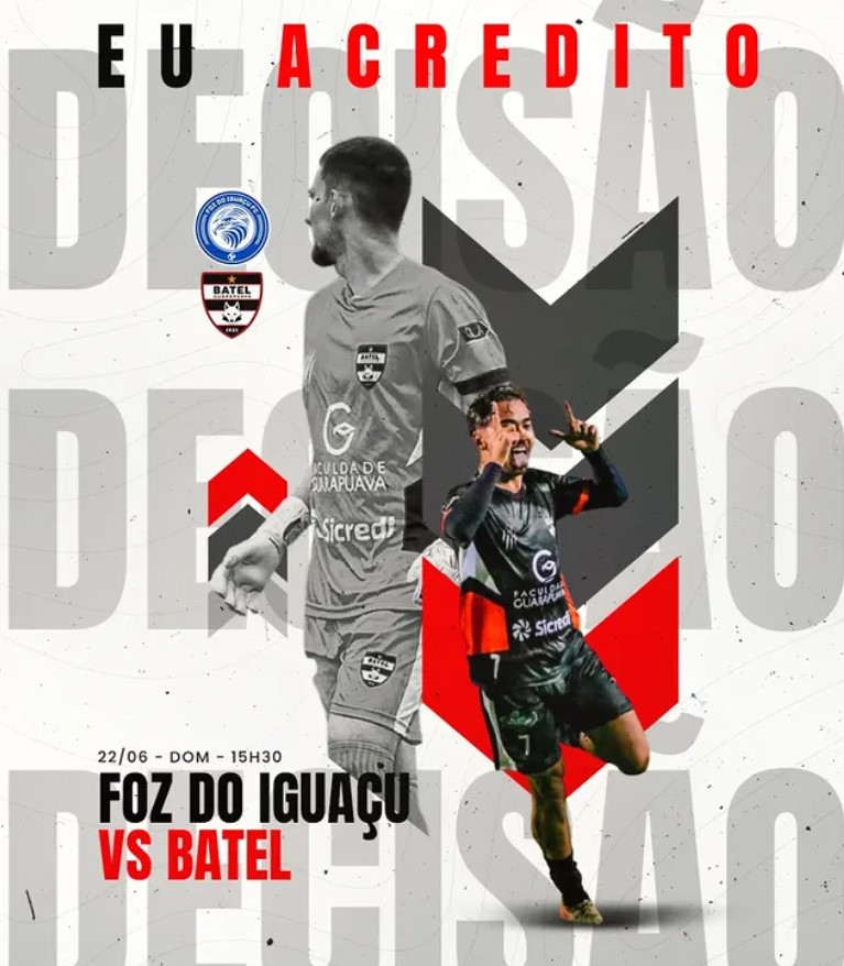 O Batel tem um compromisso decisivo neste domingo (22), às 15h30, no estádio ABC, em Foz do Iguaçu. Depois da derrota por 1×0 em casa, na partida de ida das quartas de final da Segundona Sanepar 2025, a equipe de Guarapuava precisa vencer o Foz por dois gols de diferença para seguir viva na competição. Caso o Batel vença por apenas um gol, a vaga será definida nos pênaltis.