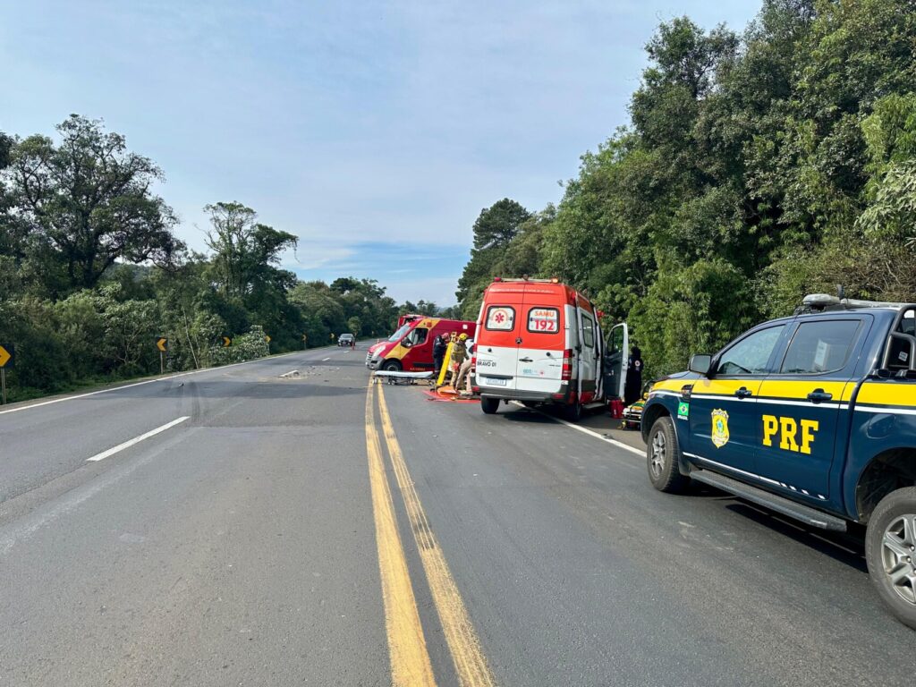 Um grave acidente registrado por volta das 13h desta terça-feira (6), no km 315 da BR-277, em Guarapuava, resultou na morte de um caminhoneiro e deixou três pessoas feridas.