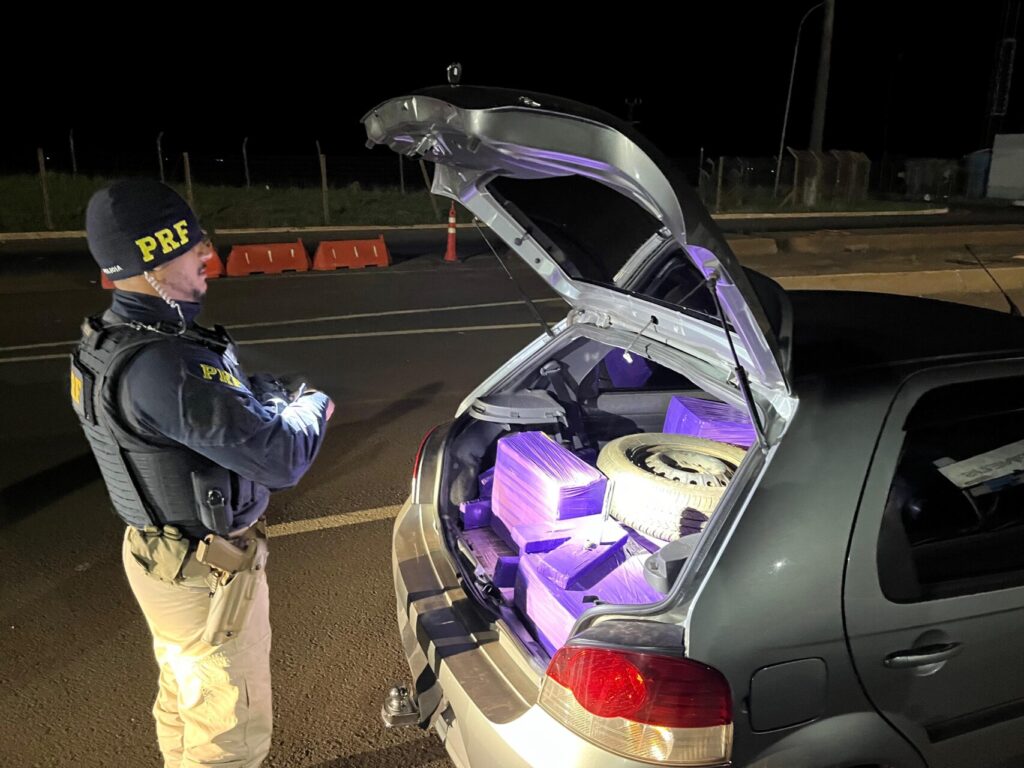 A droga estava no porta-malas, bancos e assoalhos. Ainda durante a fiscalização, os policiais rodoviários federais constataram que o carro estava com registro de furto e que havia sido furtado no começo de agosto, em Belo Horizonte (MG).