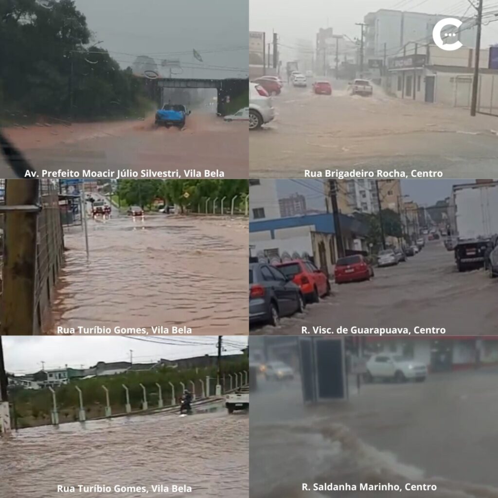 Na Avenida Prefeito Moacir Júlio Silvestri, no trecho embaixo do viaduto por onde passa a linha férrea, motoristas e motociclistas tiveram que recuar ao se depararem com muita água na pista. Algumas casas ficaram com as placas penduradas com a força da correnteza que se formou no asfalto.