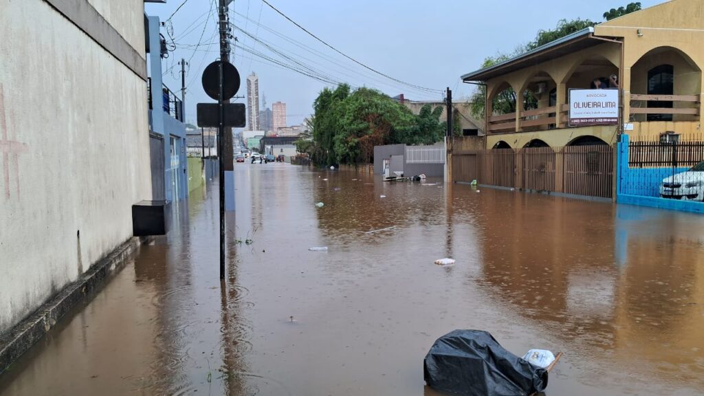 Várias ruas de Guarapuava ficaram alagadas na tarde desta quinta-feira (6). Somente o Corpo de Bombeiros registrou quatro ocorrências relacionadas às fortes chuvas na Vila Bela, Trianon e no centro. A Defesa Civil Municipal prestou pelo menos 25 atendimentos. Não houve feridos.