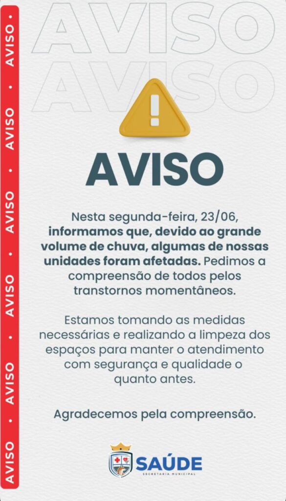 Em nota, a Secretaria pede a compreensão de todos pelos transtornos momentâneos e afirma estar tomando as medidas necessárias, como a limpeza dos espaços para manter o atendimento com segurança e qualidade o quanto antes.