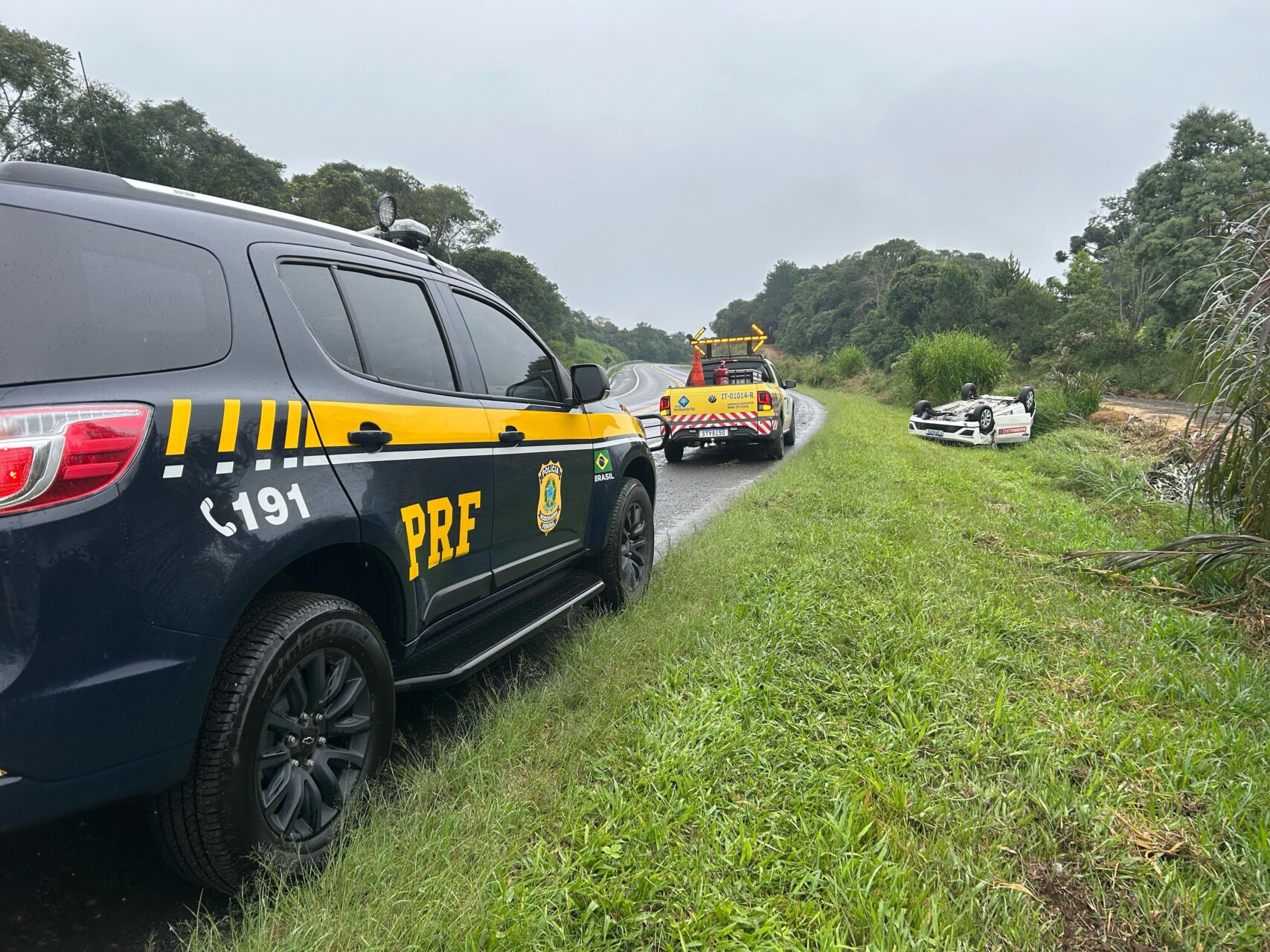 Já em Palmeira, no km 217 da rodovia, um veículo Gol com placas de São Paulo (SP) saiu da pista e capotou. A única vítima, com ferimentos leves, foi socorrida pela equipe da concessionária e levada para atendimento na Santa Casa de Irati.