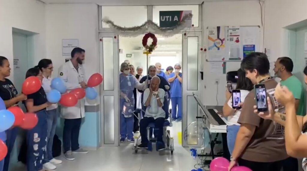 “Graças a Deus o nosso paizinho voltou para a casa. O pai não pode falar ainda, porque não sai a voz dele por conta da traqueostomia. Mas graças a Deus está tudo bem”, diz.