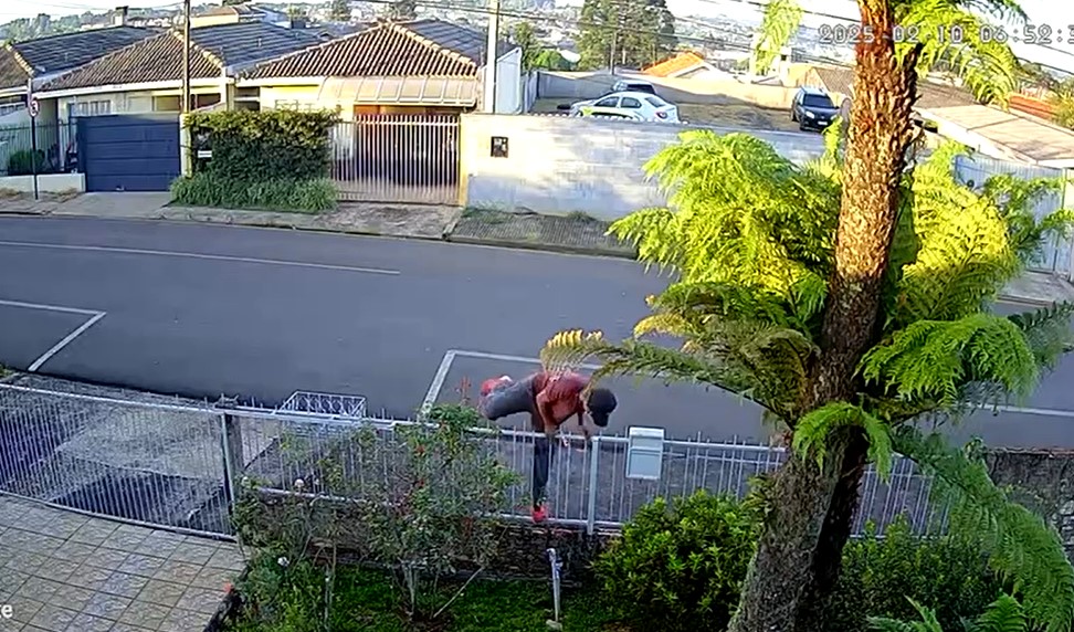 Em plena luz do dia, ladrão pula portão de residência e furta torneira do pátio. Foto: Reprodução/ Divulgação