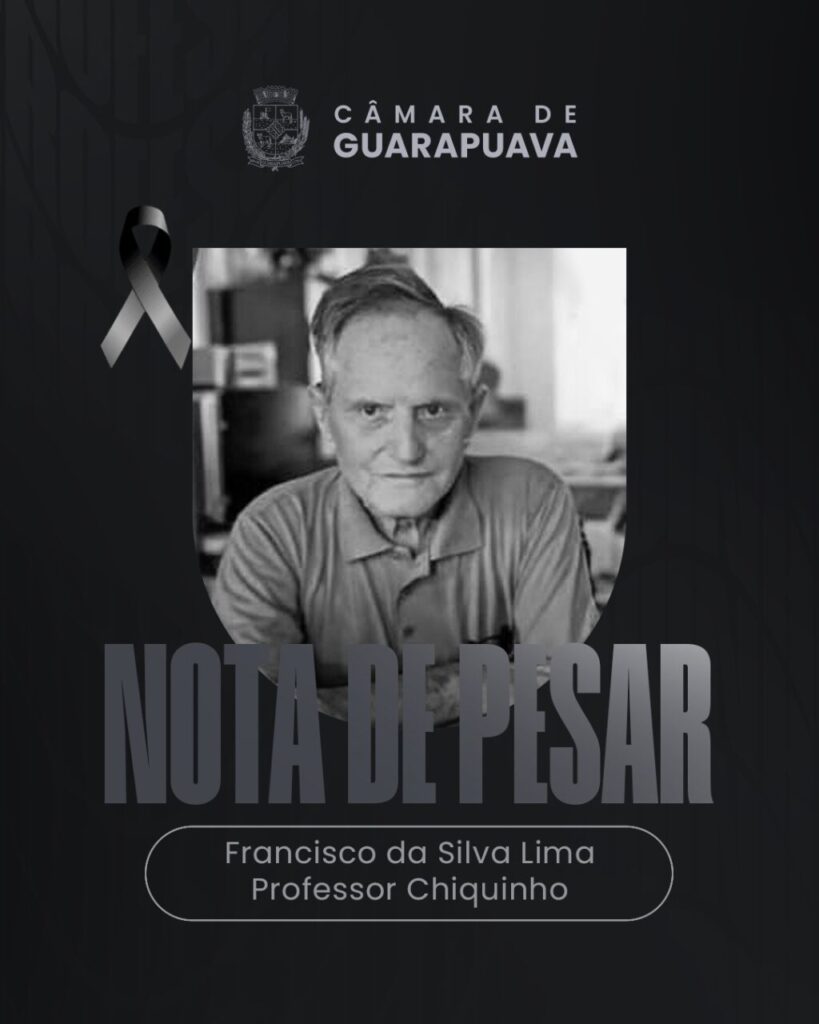 A Câmara Municipal de Guarapuava divulgou nota de pesar nesta sexta-feira (13) lamentando o falecimento do professor Francisco da Silva Lima, conhecido carinhosamente como Professor Chiquinho. Ele faleceu ontem, 12 de junho, aos 80 anos.
