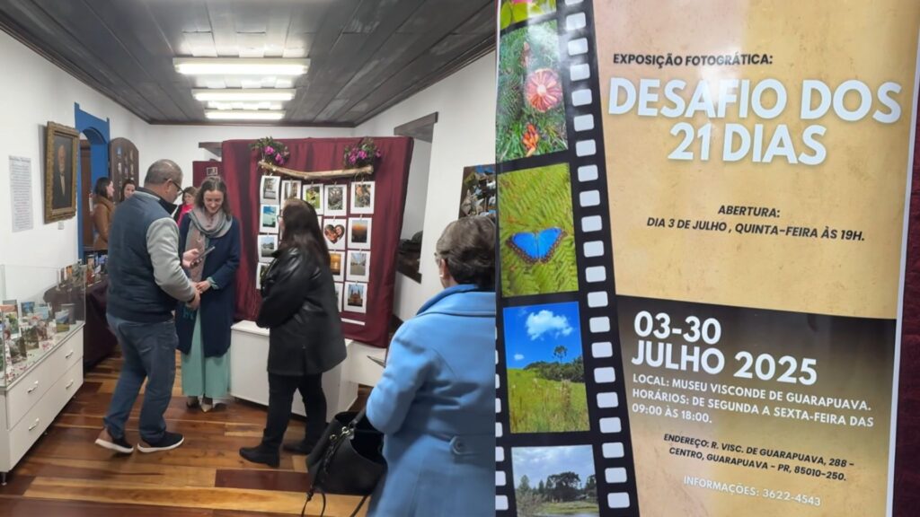 A exposição fotográfica “Desafio dos 21 Dias” foi inaugurada na noite de ontem (3) e segue aberta ao público até o dia 30 de julho, no Museu Visconde de Guarapuava. O projeto reúne imagens produzidas pelos alunos da oficina de fotografia da Usina do Conhecimento — curso semestral e gratuito — sob orientação da professora Nicole Gutfreund.
