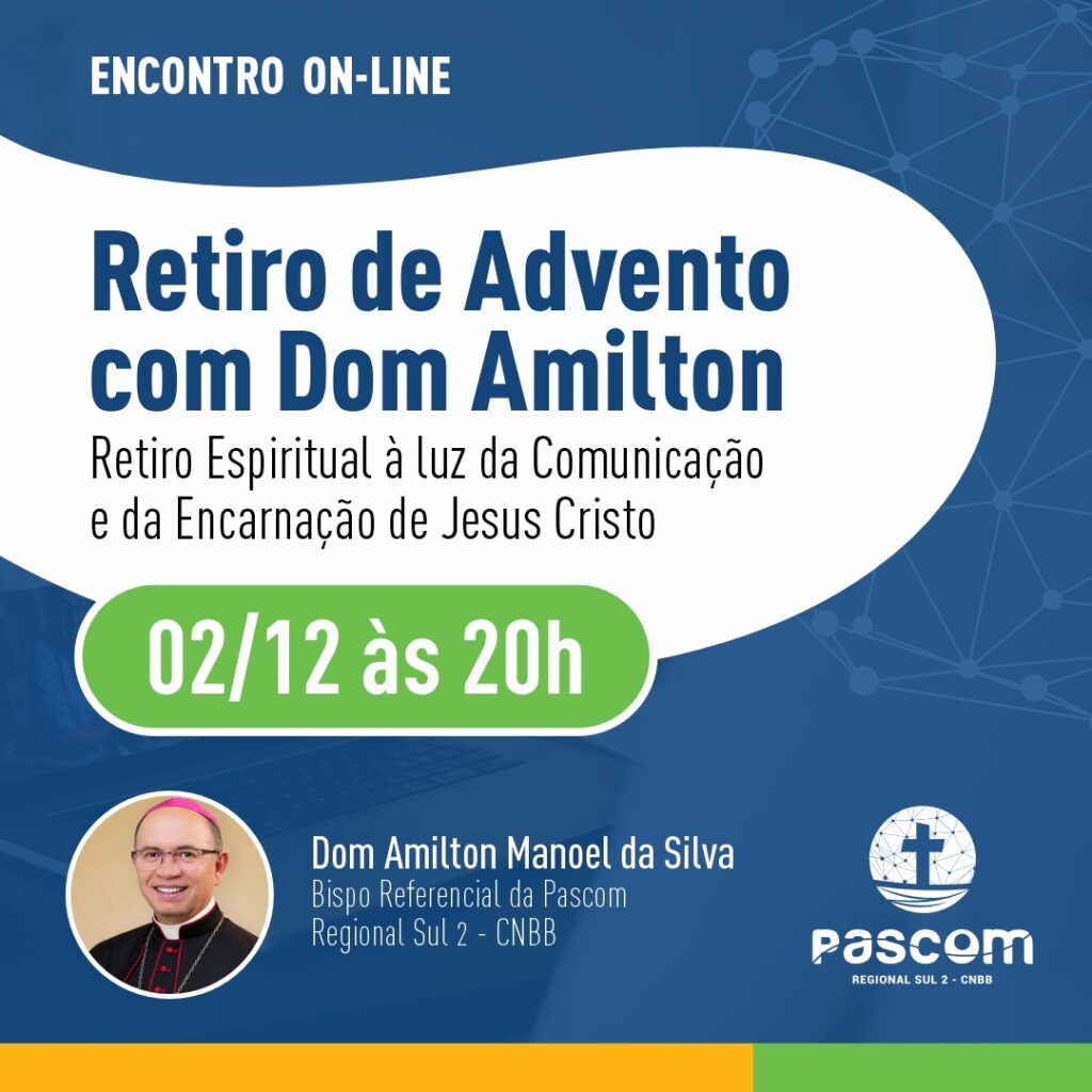A Pastoral da Comunicação da diocese de Guarapuava e o Regional Sul 2 da CNBB realizam, nesta segunda-feira (2), o “Retiro de Advento com Dom Amilton”. Com o objetivo de fortalecer a espiritualidade e a comunicação da igreja, a live será às 20 horas, pelas redes sociais da pastoral da comunicação e Regional Sul 2.