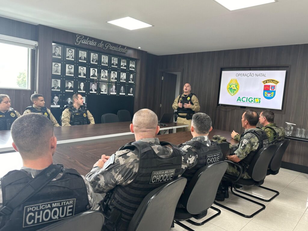 A Polícia Militar lançou na tarde desta segunda-feira (2), a Operação Natal em todo o Paraná, que tem como objetivo reforçar o policiamento nas áreas de comércio no período que antecede as comemorações de Natal. Devido à forte chuva, a cerimônia de lançamento da Operação em Guarapuava, foi reliazada somente na sede da ACIG.