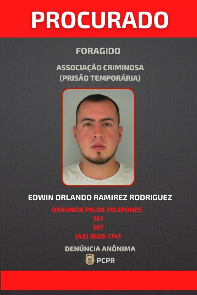 A Polícia Civil do Paraná (PCPR) divulgou, nesta quinta-feira (26), a foto de um homem, de 30 anos, que possui em seu desfavor um mandado de prisão temporária por associação criminosa, em Guarapuava.