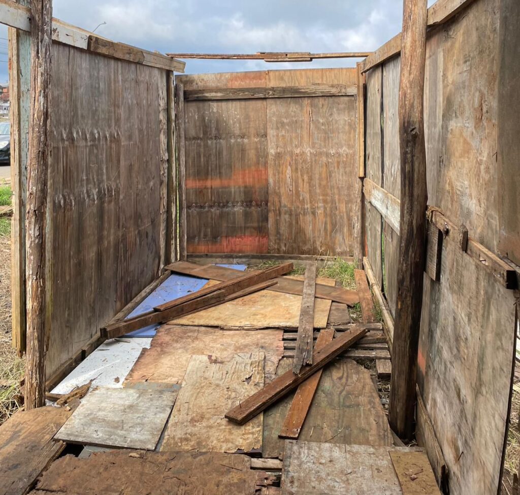No último sábado (7), a Prefeitura de Guarapuava retirou uma estrutura de compensados que havia sido montada em uma área pública no Residencial 2000. A construção era irregular e estava em um local classificado como Área de Preservação Permanente (APP), onde não é permitido construir.