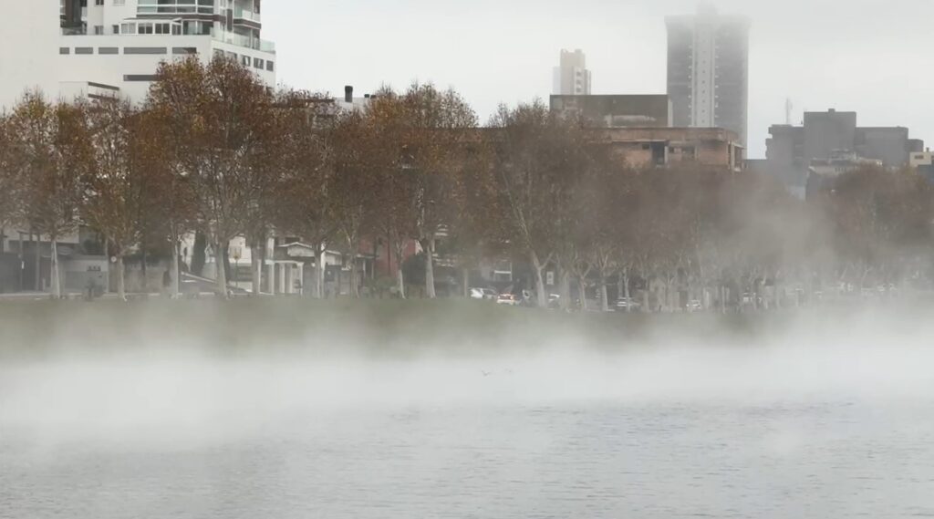 A equipe do CulturaNews esteve em dois parques da cidade nas primeiras horas da manhã — o Parque das Araucárias e o Parque do Lago. Em ambos, a cena era de frio úmido, céu fechado e uma garoa leve. A geada, esperada para áreas baixas, não apareceu. No Parque do Lago, encontramos moradores que se optaram por sair cedo para caminhar, todos bem agasalhados.