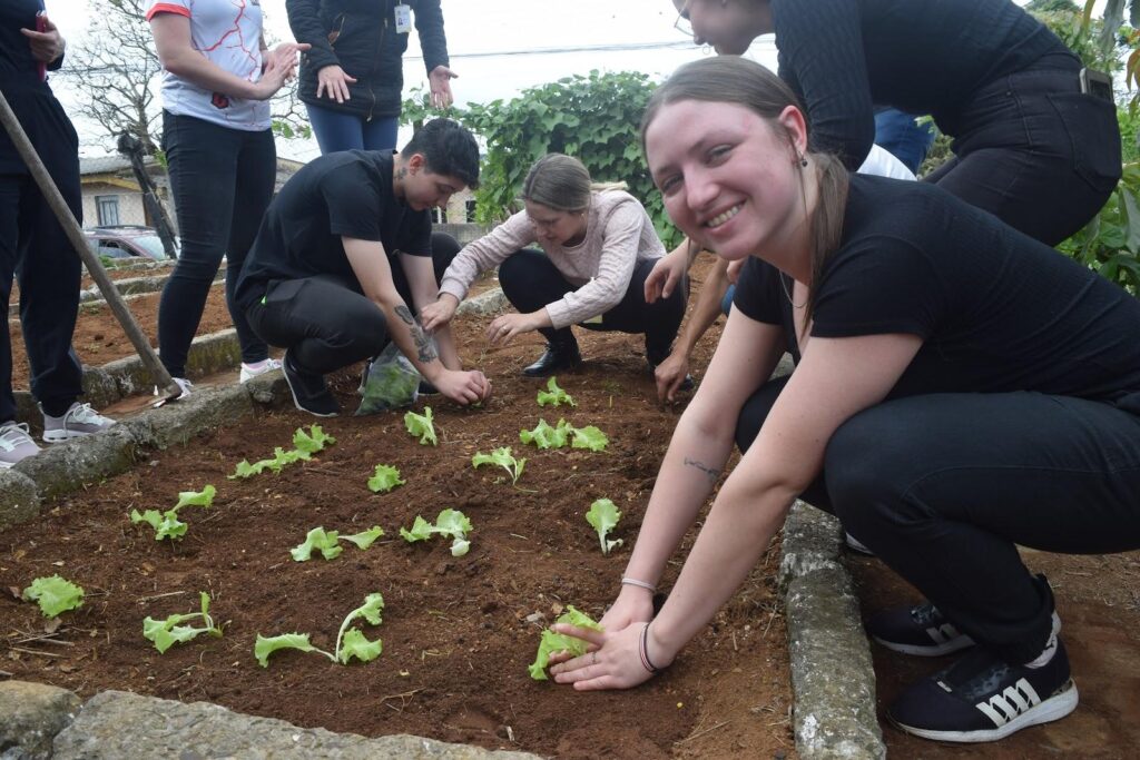 O projeto ainda conta com a colaboração do curso de Agronomia da Unicentro, que oferece suporte técnico e orientações específicas para o plantio e manejo das hortas, garantindo a sustentabilidade da iniciativa.