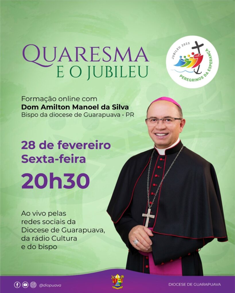 O bispo diocesano de Guarapuava, Dom Amilton Manoel da Silva, vai realizar na próxima sexta-feira (28) formação on-line. O tema abordado será a quaresma, que começará em 5 de março, e o ano jubilar 2025.