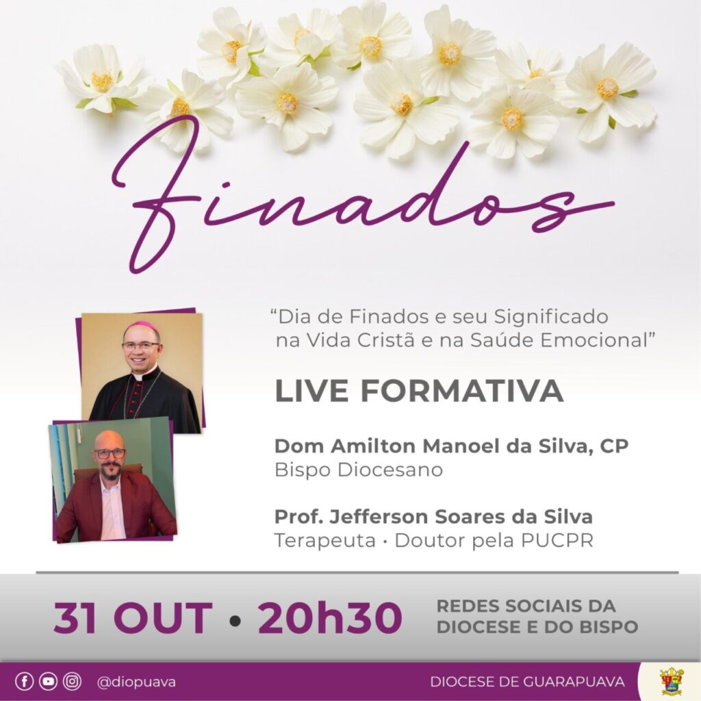 A assessoria de comunicação da diocese de Guarapuava em parceria com a PASCOM, irão realizar uma Live, na noite desta quinta-feira, 31 de outubro de 2024, com a participação do Bispo da Diocese de Guarapuava, Dom Amilton Manoel da Silva e com o terapeuta Dr. Jefferson Soares da Silva, doutor pela PUC Paraná.