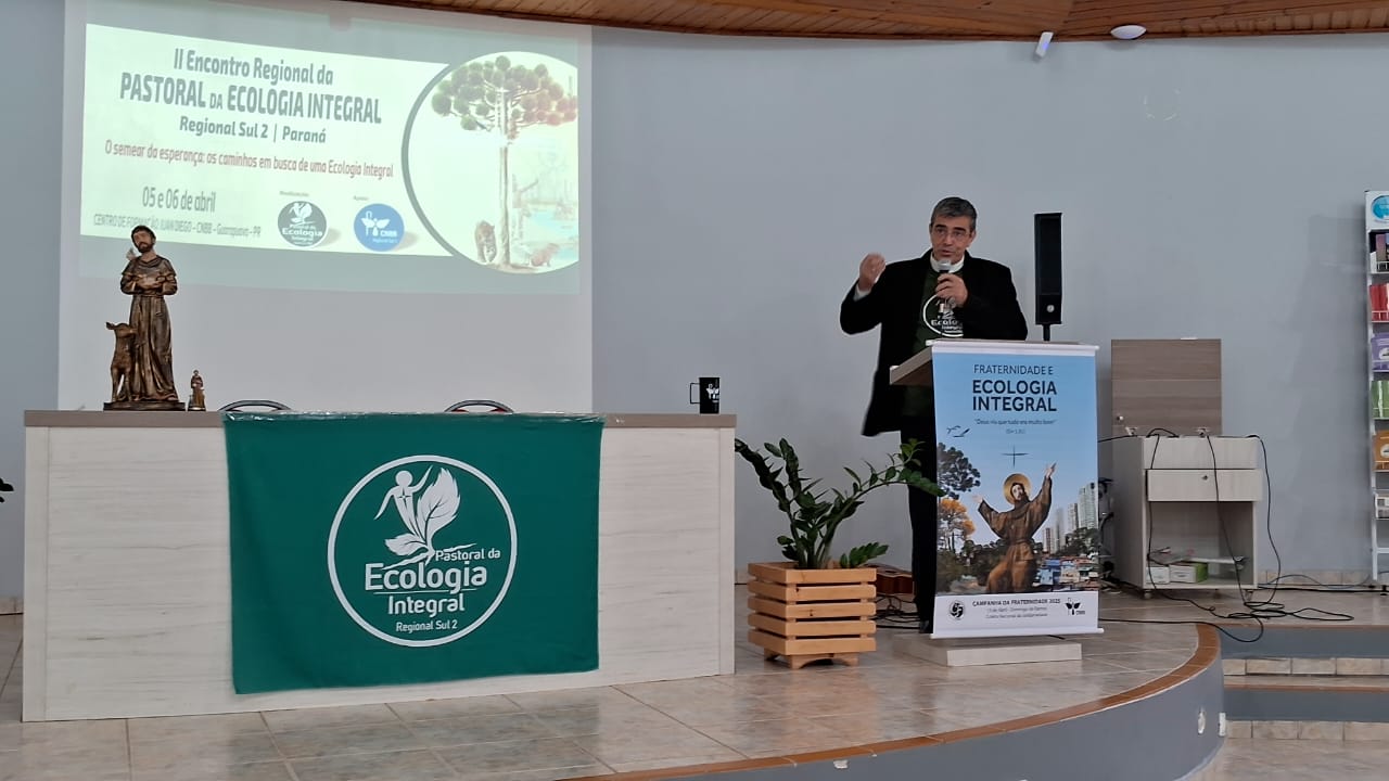 Guarapuava (PR) sediou no último fim de semana o II Encontro da Pastoral da Ecologia Integral, reunindo representantes de arquidioceses e dioceses do Regional Sul 2 da CNBB. O evento aconteceu no Centro de Formação Juan Diego. A abertura foi na tarde de sábado (5), com o tema “O pentecoste de esperança: o ano propício para uma conversão integral” com o Bispo referencial da Peisul 2, Dom Aparecido Donizete. Ele destacou que para as atitudes do ser humano mudarem, precisa-se pensar em Jesus Cristo. “Porque é Ele que nos chama a esta mudança no modo de pensar e de sentir e agir. Por isso, quando coloca uma conversão integral, aí nós estamos pensando aquilo que o Senhor já trazia também, que toca o meu eu, eu preciso também sair deste meu ego para pensar mais no outro, por isso que é fundamental essa mudança de mentalidade” – reforçou Dom Donizete.