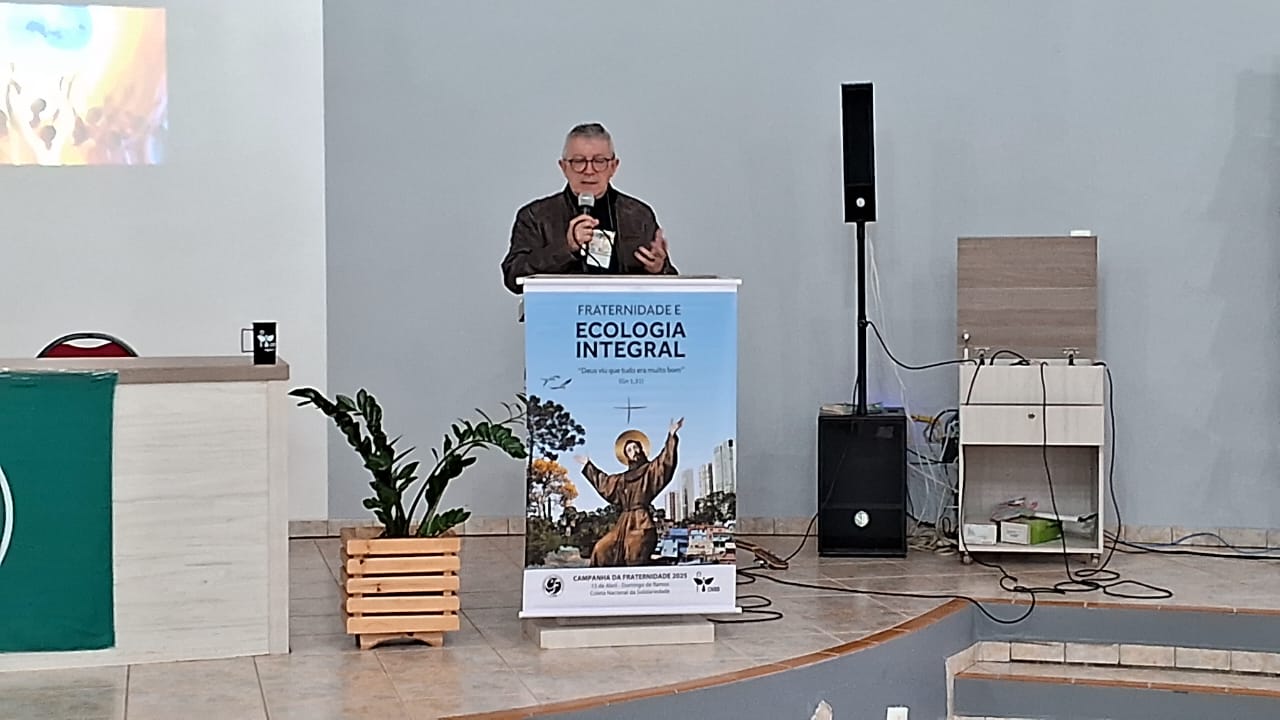 O segundo tema abordado foi feito pelo professor pós-doutor Telmo Pedro Vieira, da Universidade Federal de Santa Catarina (UFSC), especialista em política educacional, antropologia social, sociologia da religião e meio ambiente. Animador Laudato Si’, ele contribui ativamente para o debate e a mobilização em torno da Ecologia Integral. Além de falar sobre como difundir a ecologia integral nas bases, mediou o debate sobre as igrejas do Sul rumo a COP-30.