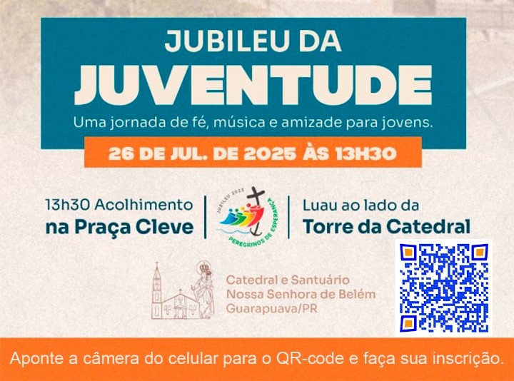O Grupo de Jovens da Catedral Nossa Senhora de Belém vai realizar no dia 26 de julho de 2025 um evento para celebrar o Jubileu da Juventude. Será uma tarde dedicada aos jovens da diocese de Guarapuava com o objetivo proporcionar um dia de fé, música, partilha e muita oração.