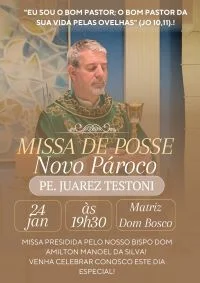 A paróquia São João Bosco, na Vila Carli, a partir de amanhã (24) terá novo pároco. O padre Juarez Testoni terá a posse canônica, às 19h30, com a bênção do bispo diocesano de Guarapuava, Dom Amilton Manoel da Silva.
