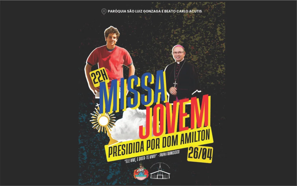 A paróquia São Luís Gonzaga e Carlo Acutis promove no próximo sábado, dia 26 de abril de 2025, a Missa da Juventude. Será presidida pelo bispo diocesano de Guarapuava, Dom Amilton Manoel da Silva.