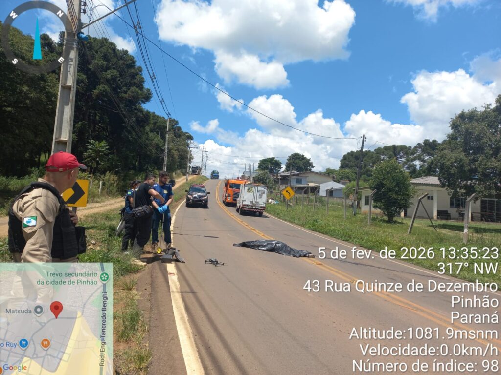 O motociclista Sebastião Mendes, de 69 anos morreu após cair da moto no Km 0+ 600 metros da rodovia PR-459, em Pinhão.