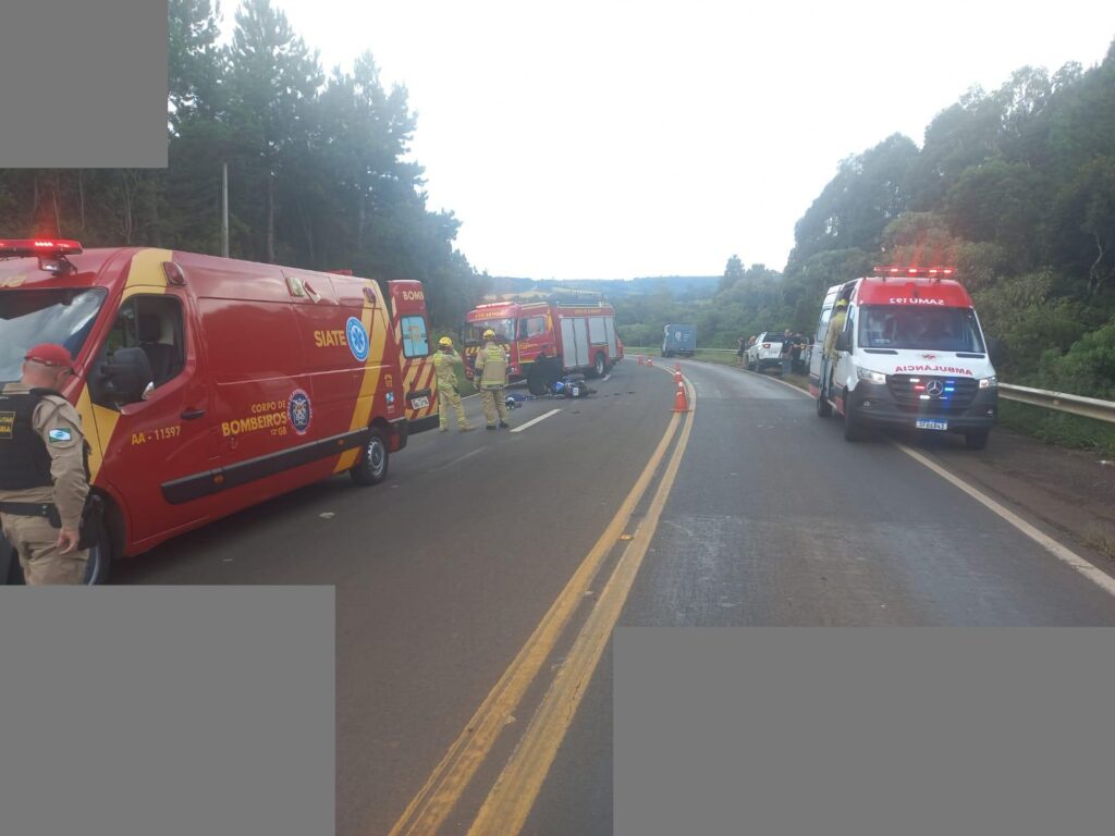 De acordo com a Polícia Rodoviária Estadual, o sinistro ocorreu por volta das 14h, no km 392, no trecho entre os municípios de Pinhão e Guarapuava. A colisão traseira envolveu uma motocicleta Yamaha/YBR, com placas de Guarapuava, e uma caminhonete Fiat Toro, emplacada em Belo Horizonte (MG).