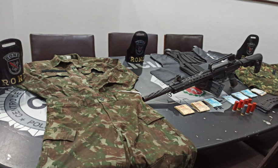 As apreensões ocorreram durante operação conjunta do Cope, unidade de elite da PCPR, e da Rondas Ostensivas de Natureza Especial (Rone), tropa especializada da PMPR. As equipes localizaram os quatro suspeitos numa casa no município de São José dos Pinhais, que estaria sendo usada como base pelo grupo criminoso. No local, foram apreendidos uma espingarda, munição, colete balístico, dinheiro, uma farda do exército brasileiro e um aparelho celular.